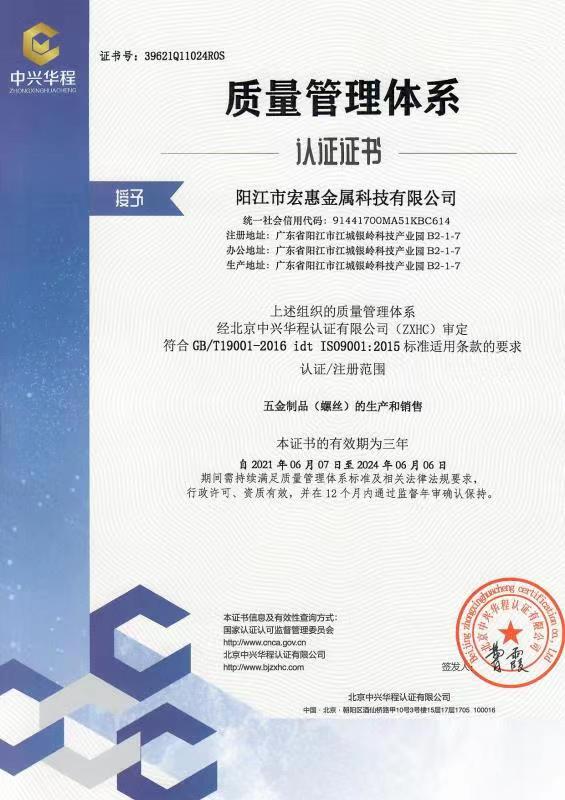 廣東宏惠金屬公司是家20多年一直專注鉆尾螺絲開發(fā)與生產(chǎn)的企業(yè),是國內(nèi)較早做鉆尾的廠家之一,同時(shí)也是國內(nèi)專業(yè)開發(fā)生產(chǎn)鉆尾螺絲的企業(yè)之一。 我司地址為于廣東省陽江市江銀嶺科技園距沈海高速白沙出口不到2公里,距陽江高鐵站也只有十余公里交通便利。 公司占地120畝,擁有超500臺(tái)套專業(yè)設(shè)計(jì) 生產(chǎn) 檢測(cè)設(shè)備。一個(gè)超200人的專業(yè)團(tuán)隊(duì),能夠嚴(yán)格按照ISO9001質(zhì)量體系要求生產(chǎn)符合GB DIN AS3566 ANSI JIS BS等標(biāo)準(zhǔn)的產(chǎn)品,生產(chǎn)銷售各種高品質(zhì)緊固件系列產(chǎn)品,為中高端客戶提供優(yōu)質(zhì)服務(wù)。也可按照客戶要求設(shè)計(jì)生產(chǎn)各種鉆尾,年產(chǎn)高品質(zhì)碳鋼 不銹鋼鉆尾螺絲2萬余噸.在各大客戶的鼎力支持下產(chǎn)品暢銷全國,并遠(yuǎn)銷亞 非 拉 歐等地,在這20多年發(fā)展的道路上我司堅(jiān)持“以質(zhì)量求生存,以信譽(yù)求發(fā)展”的精神理念不斷完善公司體系。